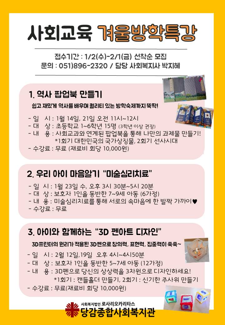 2019년 겨울방학을 맞아 사회교육 겨울방학 특강이 진행될 예정입니다.