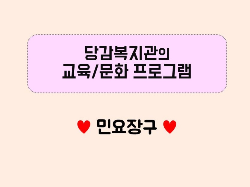 교육/문화 프로그램 - 민요장구♡ 게시글 작성정보 작성자 당감종합사회복지관 작성일 18-06-07 09:59 조회수 2,678 댓글수 0 목록 게시글 본문 이전글 2018 부산항축제에 참여한 당감복지관 친구들! 18-06-27 다음글 ★경축! 김보수 부장/김령선 과장 수상소식★ 18-06-07 댓글 0 등록된 댓글이 없습니다. 목록