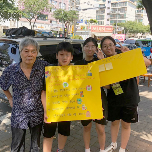포럼 활동을 마친 뒤에는 캠페인을 위한 예쁜 판넬을 제작하여 지역주민들을 직접 찾아뵙고 환경 문제와 친구들이 생각한 실천 방안을 나누는 시간도 가졌습니다! 참여해 주신 지역 주민 여러분, 감사합니다!-