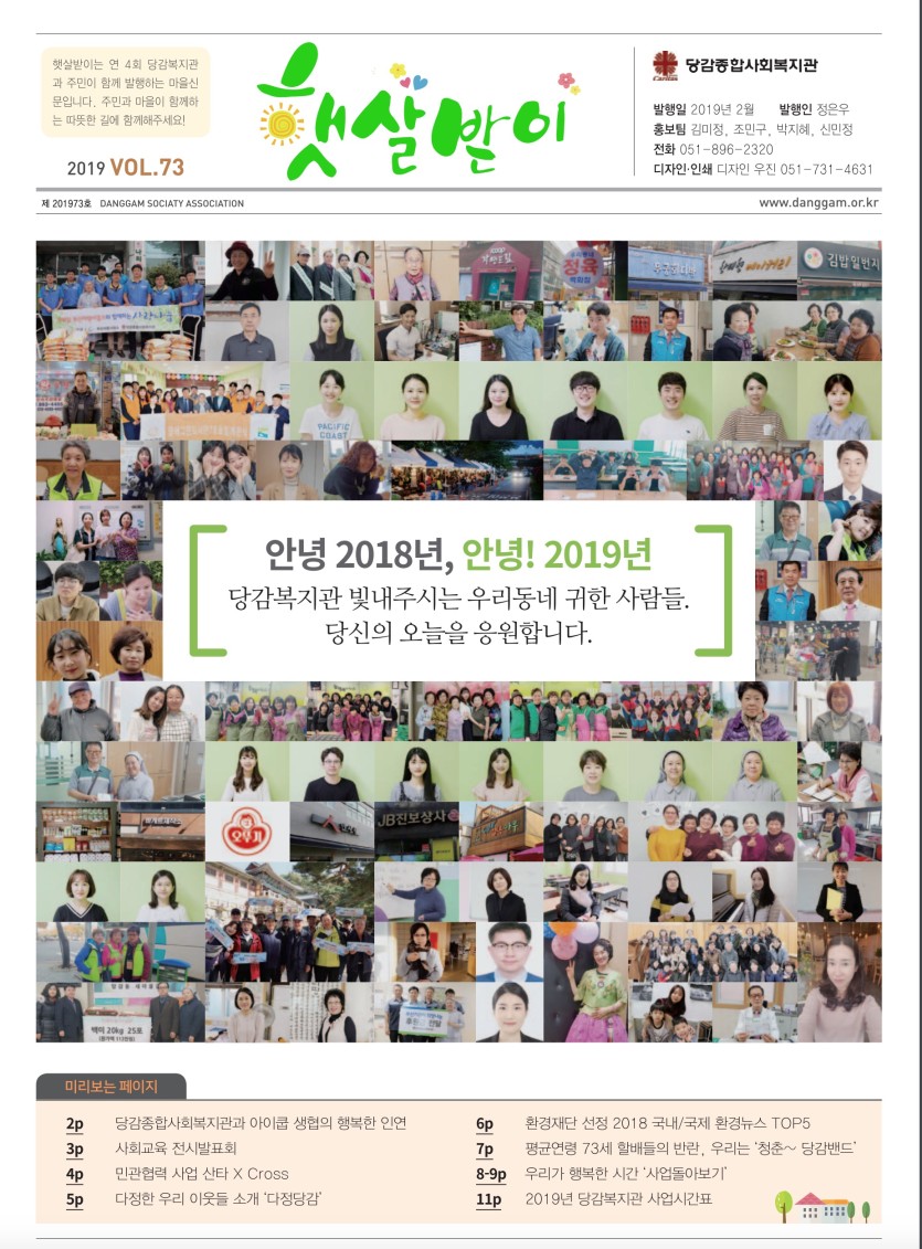 햇살받이 73호 게시글 작성정보 작성자 당감종합사회복지관 작성일 19-01-30 15:15 조회수 2,641 댓글수 0 목록 게시글 본문 첨부파일 1개 2019 당감복지관 마을신문 73호 웹용.pdf (9.9M) 237회 다운로드 첨부일시 : 2019-01-30 15:15:37 이전글 햇살받이 74호 19-07-12 다음글 햇살받이 72호 18-11-02 댓글 0 등록된 댓글이 없습니다. 목록
