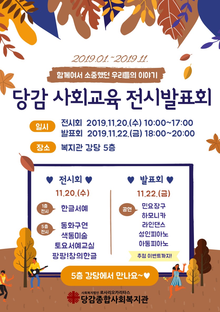당감복지관에서 사회교육의 2019년을 함께 돌아보는 전시발표회가 실시됩니다!