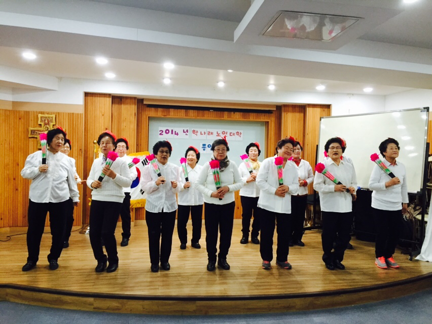 학나래 노인대학 종업식 게시글 작성정보 작성자 당감종합사회복지관 작성일 14-12-16 11:53 조회수 2,064 댓글수 0 목록 게시글 본문 학나래 노인대학 종업식이 12월 15일 월요일 2시~4시에 진행되었습니다.어르신들께서 2달 간 연습한 부채 춤 공연도 해주셨답니다.60세 이상 어르신이면 누구나 참여가능하니 언제든 문의주시기 바랍니다. 학나래 노인대학 학생 여러분, 모두 건강하시고 내년 3월 2일에 뵙겠습니다.^^ 이전글 한글교실 종업식 14-12-30 다음글 노인주간보호 14-11-28 댓글 0 등록된 댓글이 없습니다. 목록