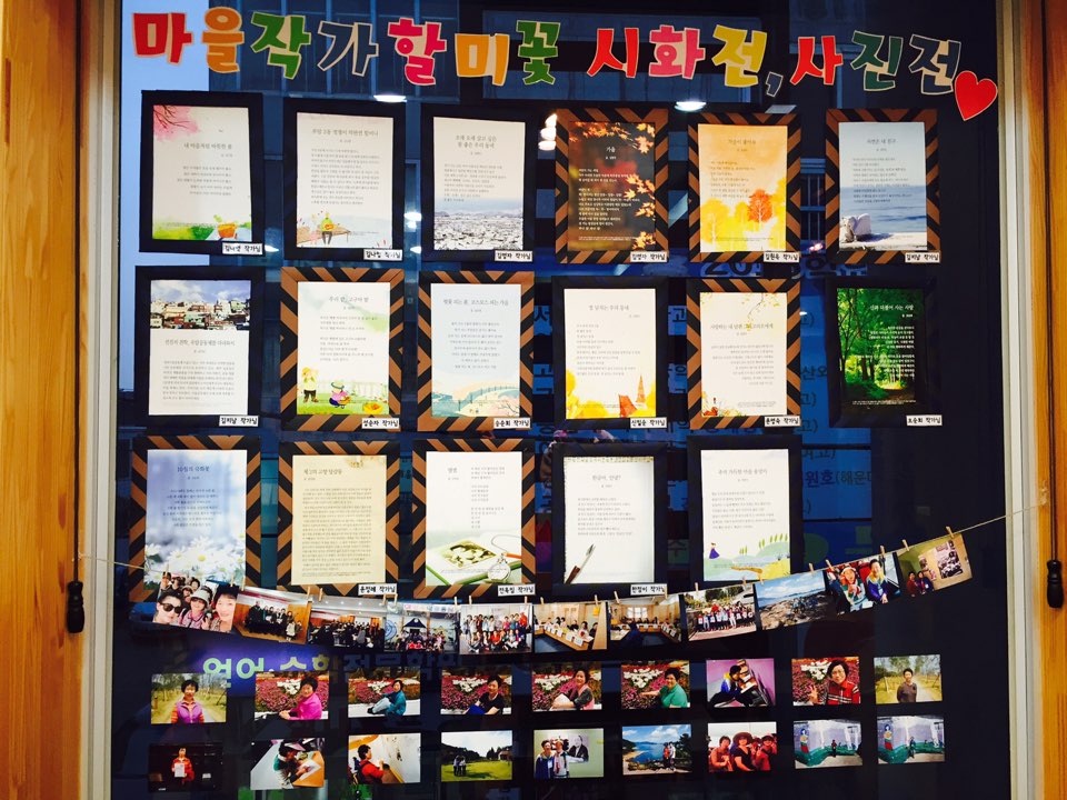 마을작가_마을시화전 게시글 작성정보 작성자 당감종합사회복지관 작성일 15-11-23 17:32 조회수 3,142 댓글수 0 목록 게시글 본문 2014년 인문학 강의, 민요 스토리텔링, 심리미술 스토리텔링, 작가마을체험 등 다양한 활동을 통해 책 발간의 쾌거를 이루었다. 2015년 내 생애 최고의 순간 2차년도를 맞이하여 글 잘 쓰는 방법 강의, 심리미술스토리텔링, 선진지견학(우암공동체), 야외 글쓰기(다대포), 이야기보따리한마당&공동글쓰기를 진행하였으며 11월 17일-30일 행복마루 카페 2층에서 마을시화전&사진전이 진행되고 있다. 마을 시화전을 통해 마을의 감수성을 살려내고 공동체성 회복을 도모하고자 한다.지역 주민들의 많은 관심 부탁드립니다. 이전글 노인주간보호 15-12-01 다음글 노래 부르는 영어동화(노부영) 15-11-17 댓글 0 등록된 댓글이 없습니다. 목록