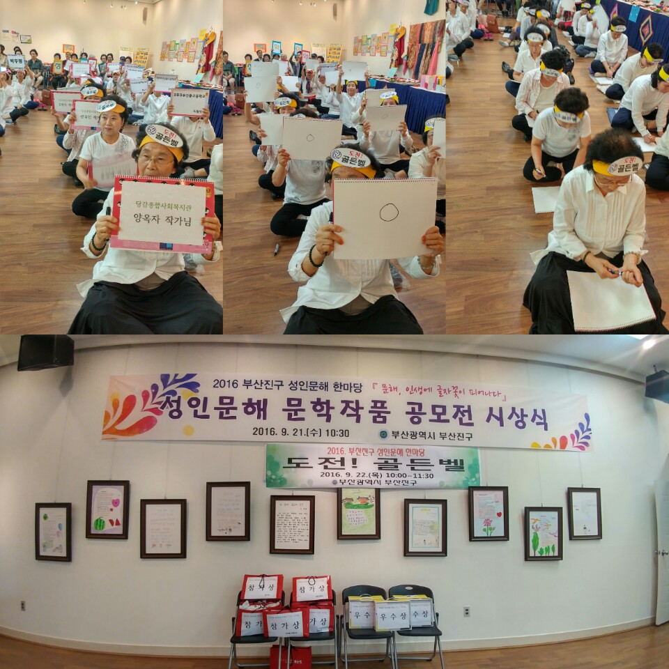 성인문해한마당 도전! 골든벨 참여 게시글 작성정보 작성자 당감종합사회복지관 작성일 16-09-22 16:33 조회수 3,433 댓글수 0 목록 게시글 본문 성인문해한마당이 부산 진구청에서 9월 21일(수)~22일(목) 이틀 간 열렸습니다!저희 복지관 내 생애 최고의 순간 작가님들도 참석을 했답니다. 도전! 골든벨. 머리띠를 두르고 열심히 퀴즈를 풀었습니다.아쉽게 결승전에 2명 진출하였지만,우승 문턱 한 단계 앞에서 탈락하였습니다.참가한 것에 의의를 두고 모두 즐거워하셨습니다!부산 진구 내 성인문해 기관들 작품도 구경하고함께 소통하는 시간이 되어서 좋았습니다.한글교실 및 내 생애 최고의 순간 프로그램 문의 : 896-2320 (손선형 사회복지사) 이전글 꽃보다 황혼 나들이 16-09-24 다음글 성인문해 문학작품 공모전_으뜸상 수상! 16-09-22 댓글 0 등록된 댓글이 없습니다. 목록