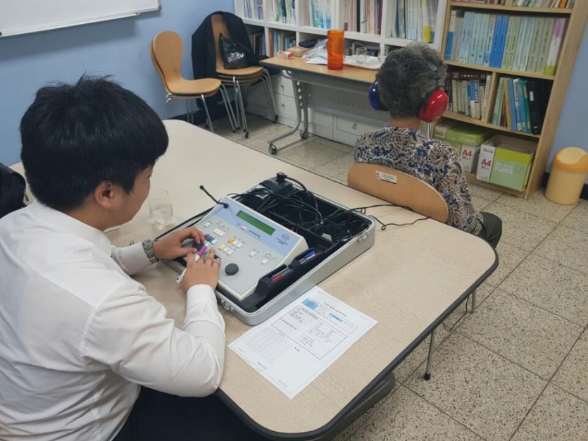 노인이 되어 청각기관의 노쇠 현상으로 점진적으로 나타나는 청력감소는 자연스러운 현상이지만 방치할 경우 청력손실의 회복이 불가능하므로 조기발견이 중요하다고 합니다. 이에 7월 30일 (월) 오전 9시부터 11시 30분까지 우리 복지관에서 난청교육과 청력검사가 있었습니다.이날 물리치료실에서 간단한 난청교육을 받고 청력검사를 실시했는데요 복지관을 이용하는 어르신 24명이 검사를 받으셨고 검사결과에 따라 상담이 진행되었습니다.