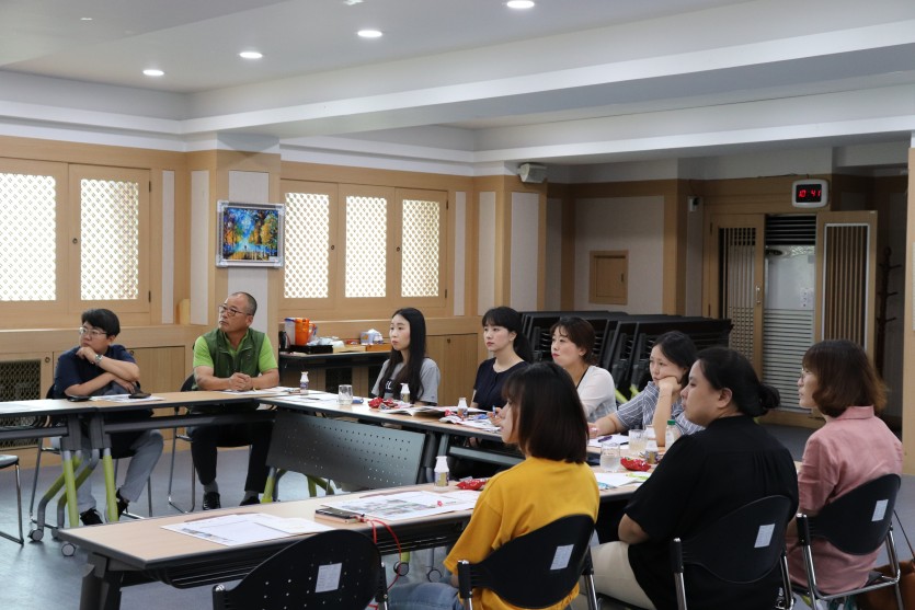 9명의 직원들과 함께 '주민과 함께하는 복지관'에 대해 지역조직팀의 김령선 과장님과