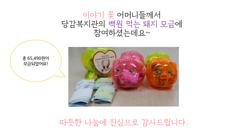 이야기 꽃 어머니들의 따듯한 나눔 게시글 작성정보 작성자 당감종합사회복지관 작성일 18-08-16 18:29 조회수 2,750 댓글수 0 목록 게시글 본문 이전글 공익형 노인사회활동지원사업 참여자 활동교육 18-09-18 다음글 청소년 환경사랑그린포럼 - 2018년 응답하라1318 18-08-14 댓글 0 등록된 댓글이 없습니다. 목록