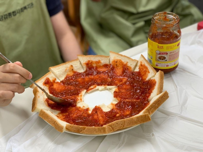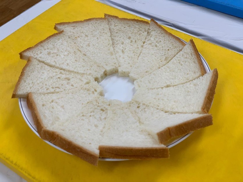 짜잔 동그라미친구들이 모두 협동하여 만튼 토스트 피자가 완성되었어요~~