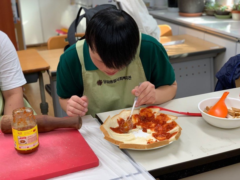 오늘은 일상적 식사관련 수행능력을 높이기 위해 요리수업이 진행됬습니다~
