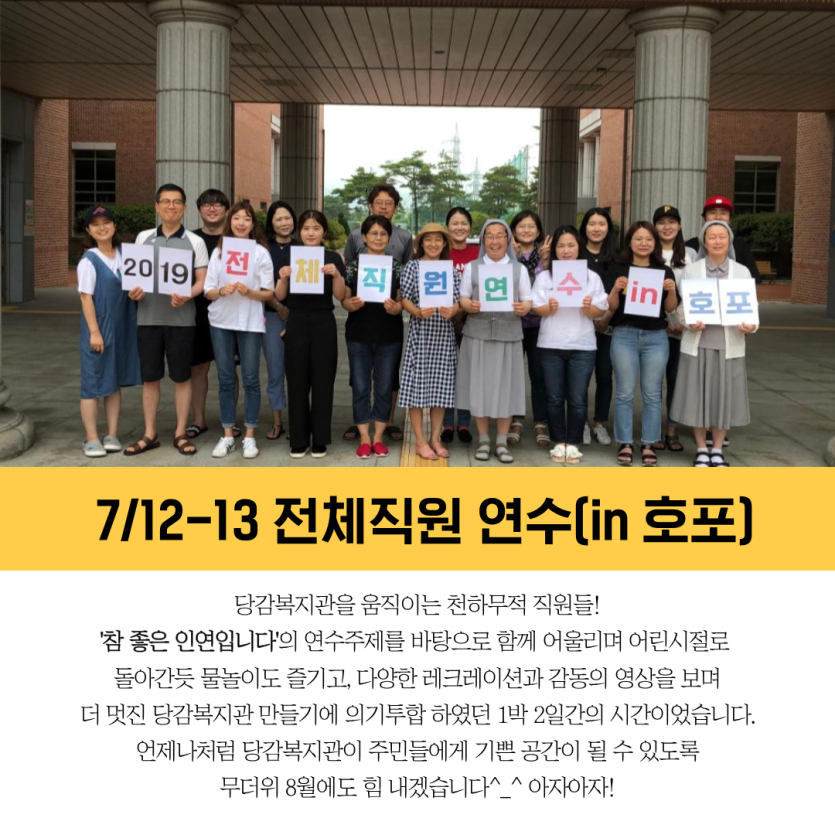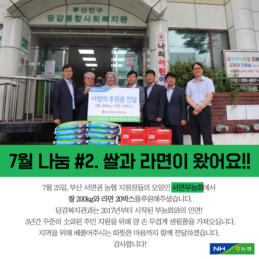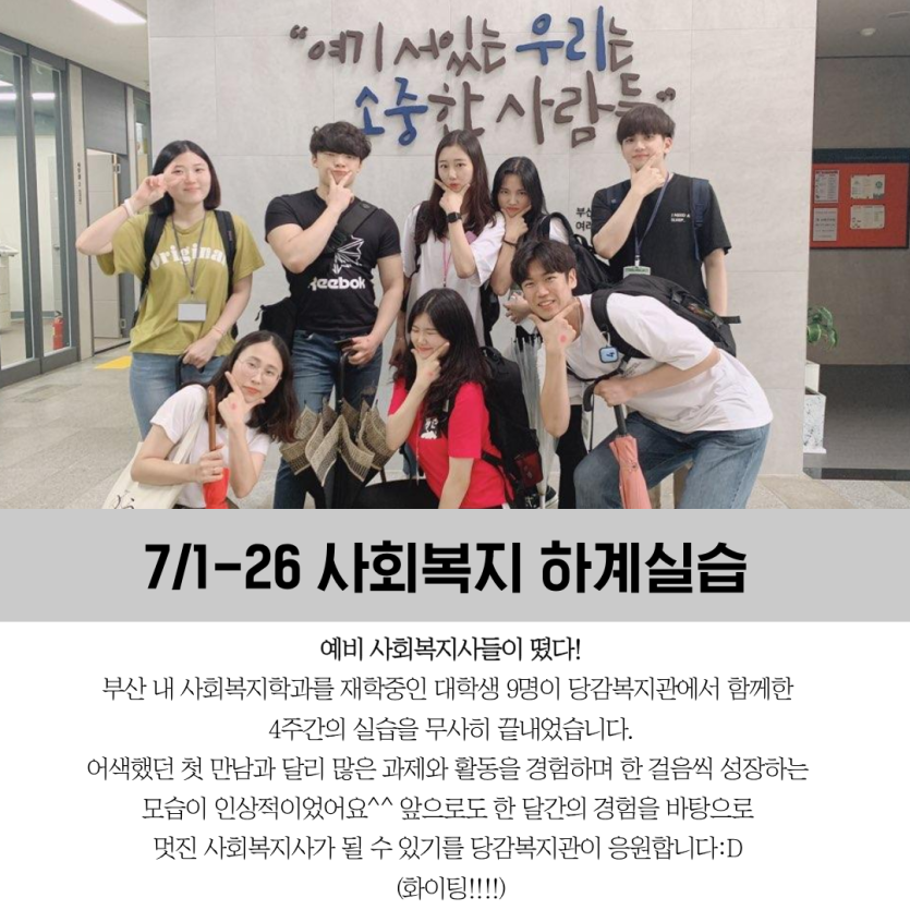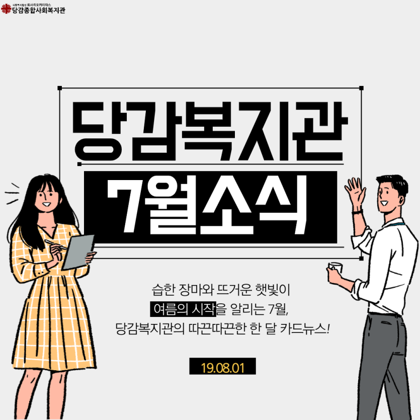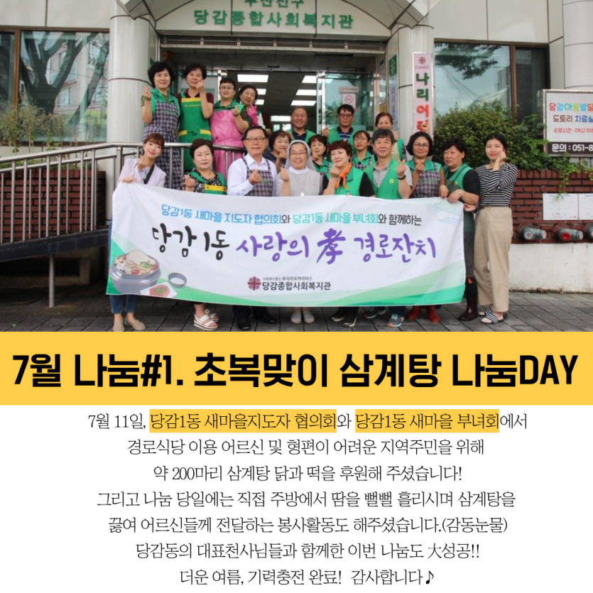 ★당감의 7월소식 카드뉴스★ 게시글 작성정보 작성자 당감종합사회복지관 작성일 19-08-01 11:45 조회수 3,105 댓글수 0 목록 게시글 본문 이전글 말복맞이 사랑의 삼계탕 나눔 행사 19-08-12 다음글 농협 서면 부농회와 함께한 아름다운 나눔 19-07-31 댓글 0 등록된 댓글이 없습니다. 목록