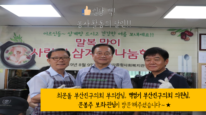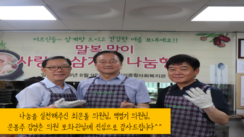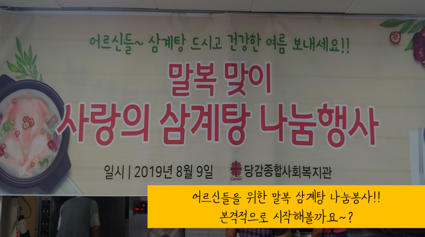 말복맞이 사랑의 삼계탕 나눔 행사 게시글 작성정보 작성자 당감종합사회복지관 작성일 19-08-12 15:55 조회수 3,445 댓글수 0 목록 게시글 본문 이전글 생명숲 기억키움학교(7월~8월) 19-08-26 다음글 ★당감의 7월소식 카드뉴스★ 19-08-01 댓글 0 등록된 댓글이 없습니다. 목록